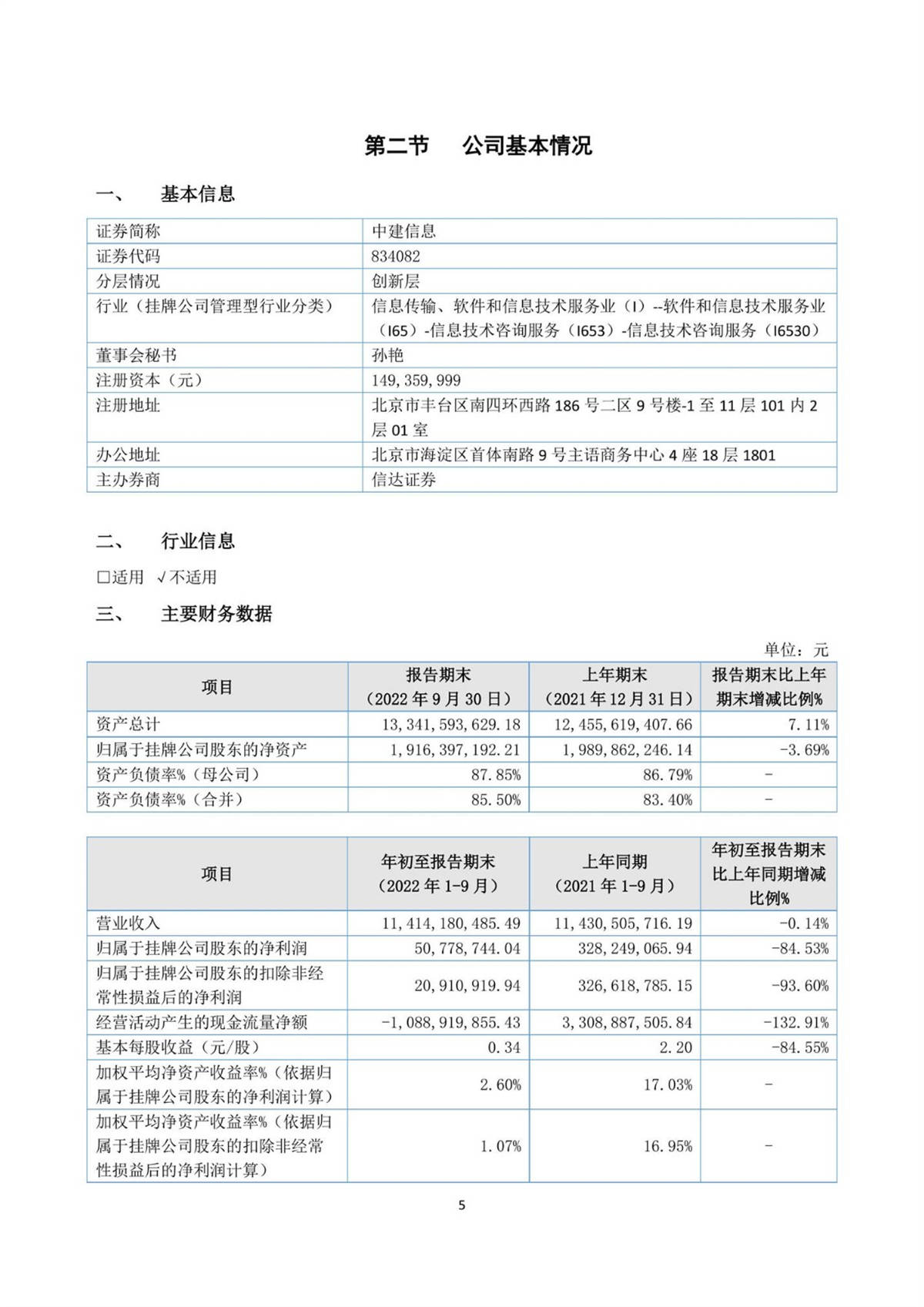 中建信息2022年第三季度報告